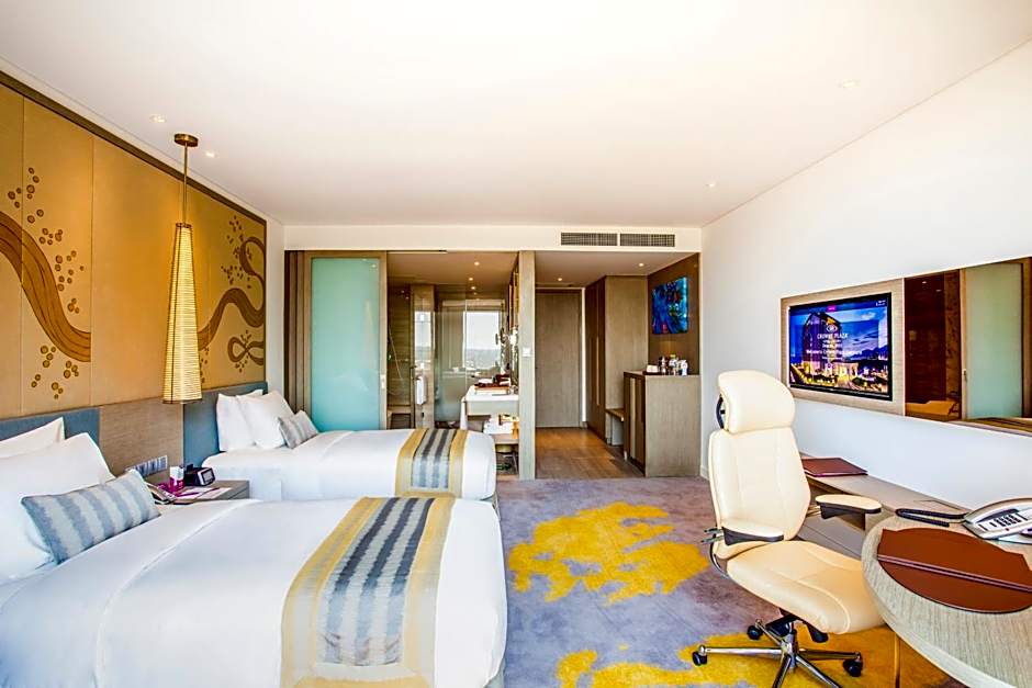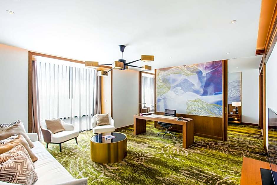 Incorporating traditional Lao and contemporary designs, the spacious suite comes with a separate living room and bedroom. The stylish bathroom is equipped with a rain shower and a walk-in closet. Guests enjoy exclusive Club Lounge benefits.